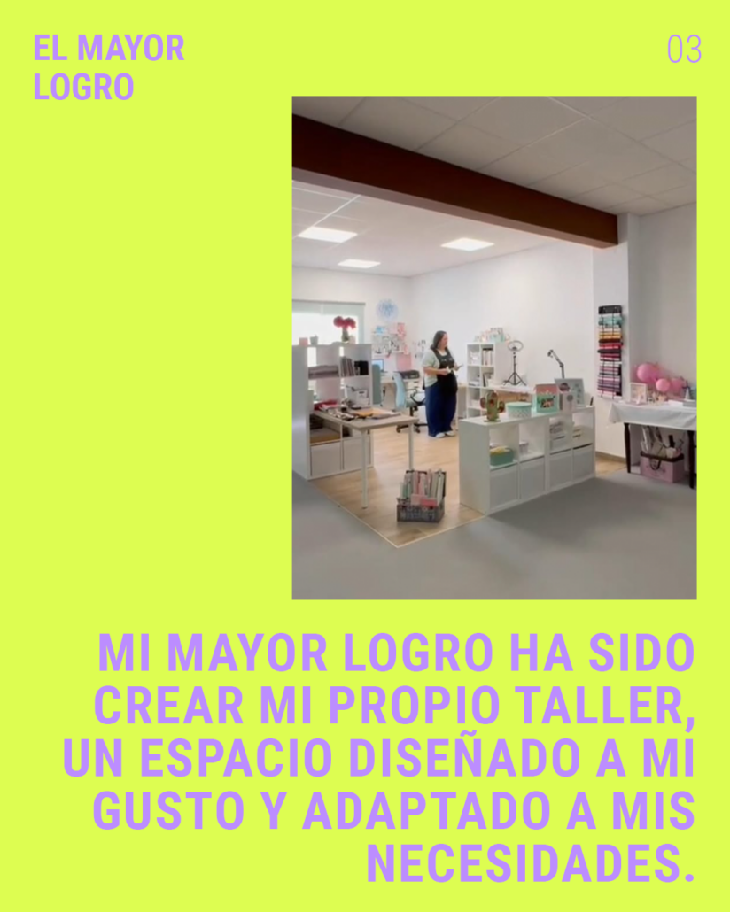 De todos los logros alcanzados en este proceso, hay uno que guarda un significado muy especial para ella: haber creado su propio taller creativo.